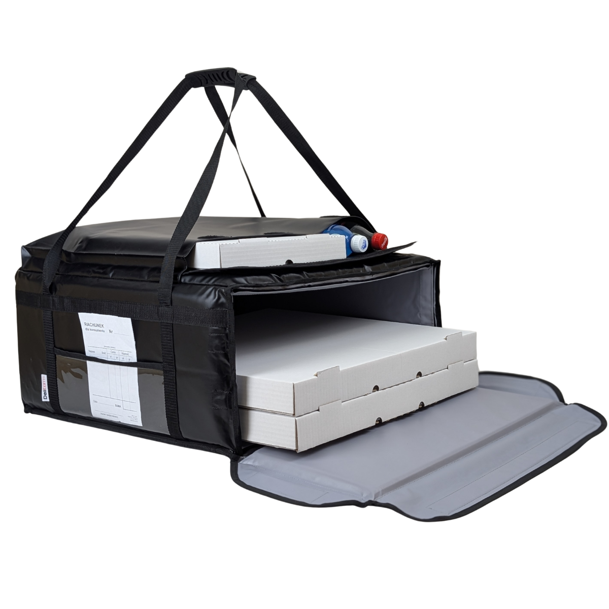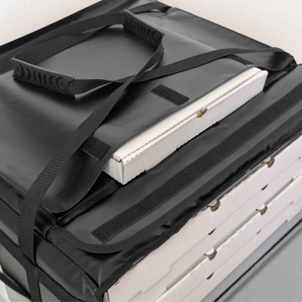 Torba została wyposażona w praktyczną górną kieszeń, która pomieści kilka butelek lub dania na zimno, których nie chcemy wkładać razem z ciepłymi pizzami.